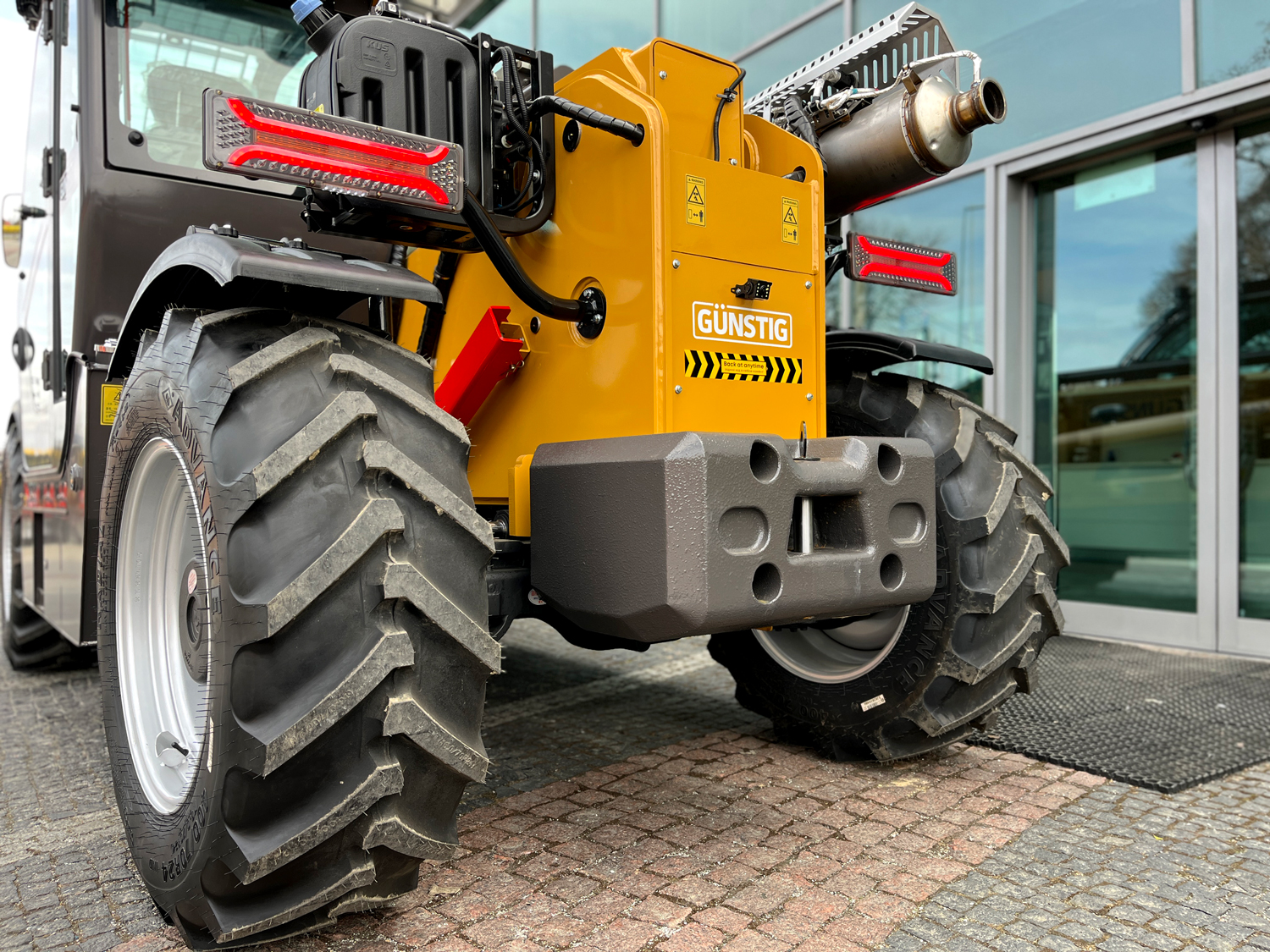 | techniczne | Przepływ oleju: 150 l/min | Typ: 4 cyl., chłodzony cieczą, Euro5 | Opony: 400/70-24 |